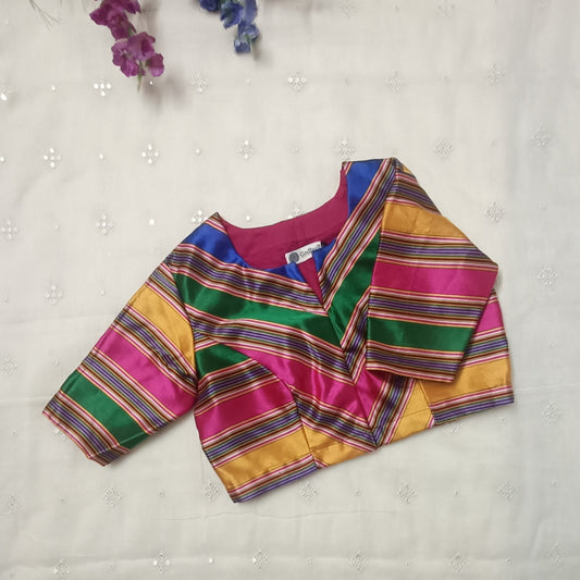 Readymade Multicolored Gaji Stripes Blouse With Empire line Pattern | Godhuli