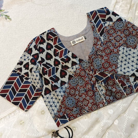 Buy Indigo Maroon Abstract Ajrakh Blouse | Godhuli