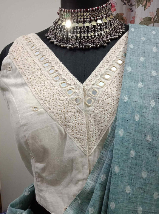 Buy Ivory Spaghetti Mirror work Blouse | Godhuli