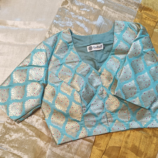 Buy Light Blue Banarasi Brocade Blouse | Godhuli
