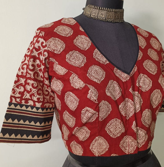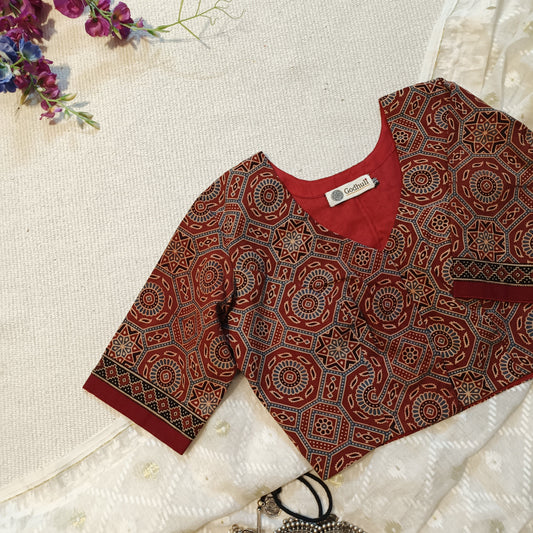 Buy Maroon Ajrakh Blouse with Sleeves | Godhuli