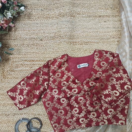 Buy Maroon Banarasi Brocade Blouse | Godhuli