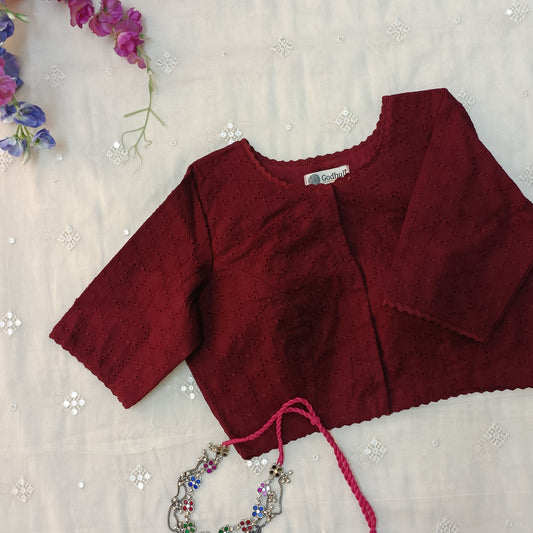 Buy Maroon Cut Work Blouse with Sleeves | Godhuli
