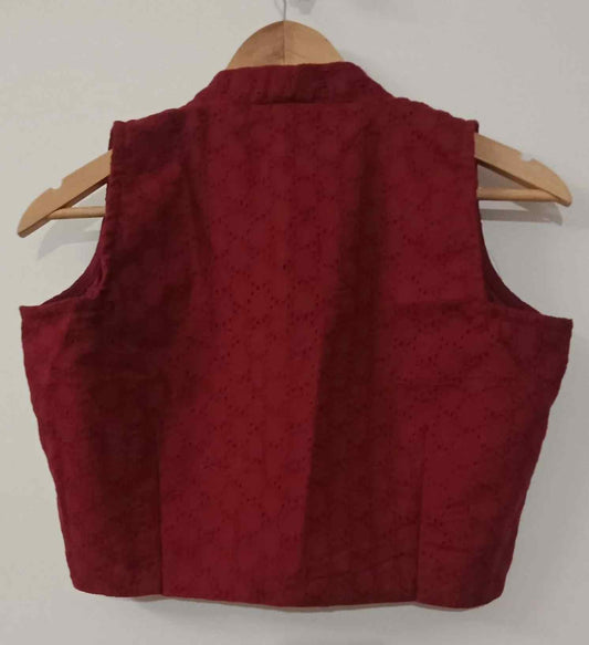 Buy Maroon Cut Work Sleeveless Blouse | Godhuli