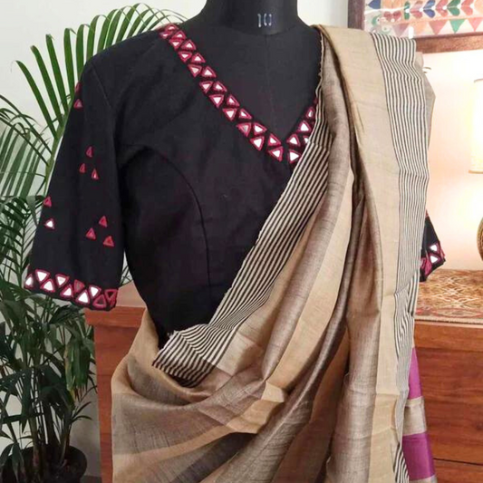 Buy Black Colour Blouse with Jacquard Sleeves| Godhuli