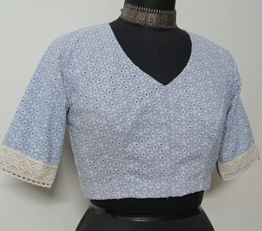 Buy Powder Blue Cut Work Embroidered Blouse | Godhuli