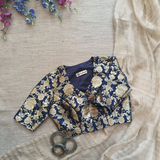 Buy Royal Blue Floral Jaal Banarasi Brocade Blouse | Godhuli