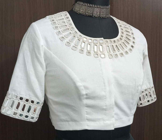 Buy Handcrafted Ivory Mirror Work Blouse | Godhuli