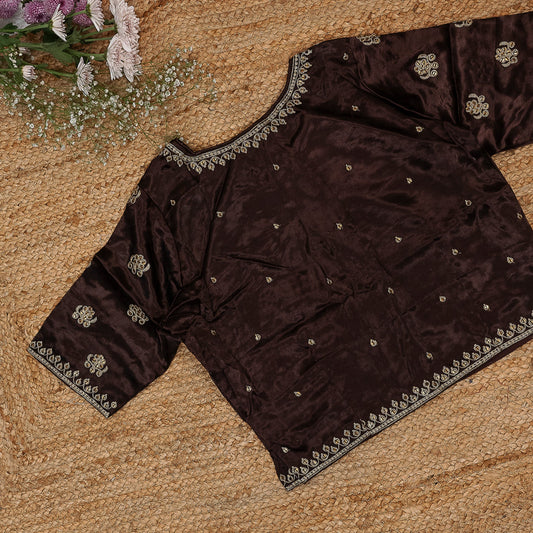 Buy Chocolate Brown Gaji Silk Aari Work Blouse Combo | Perfect for B2B Orders
