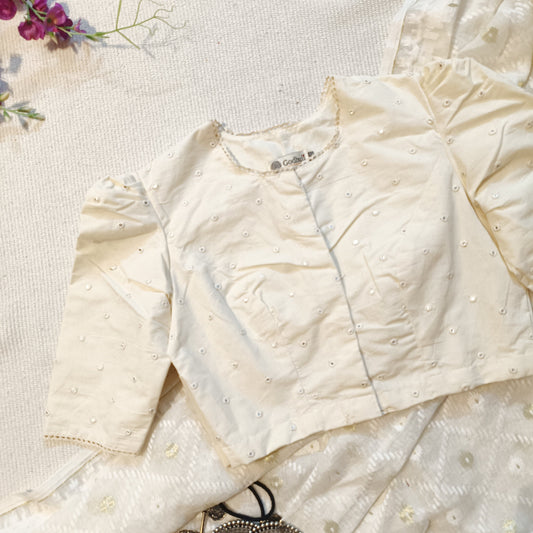 Buy Ivory Mirrorwork Bengali Sleeves Blouse Combo | Perfect for B2B Orders
