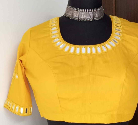 Buy Sunshine Yellow Cotton Silk Mirror Work Blouse Combo | Perfect for B2B Orders