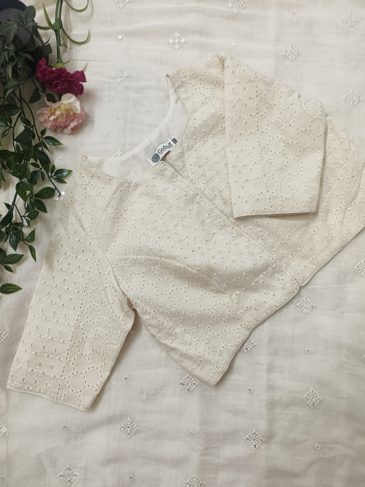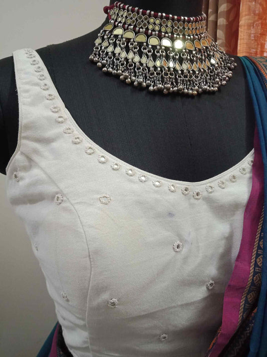Buy Off White Sleeveless Mirrorwork Blouse Combo | Perfect for B2B Orders