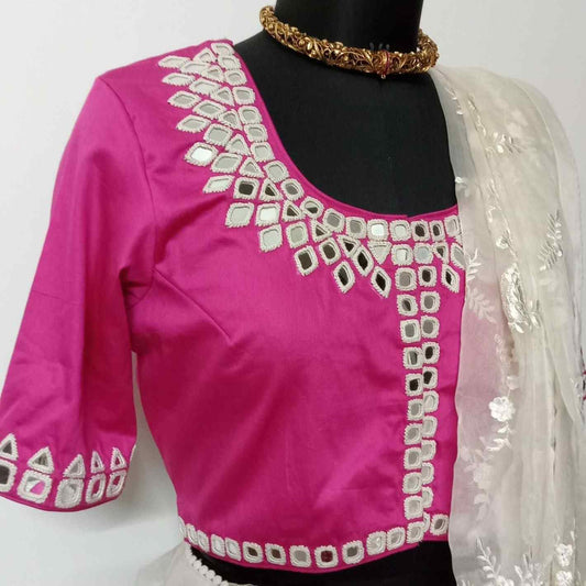 Buy Fuschia Mirrorwork Blouse with Puff Sleeves Blouse Combo | Perfect for B2B Orders