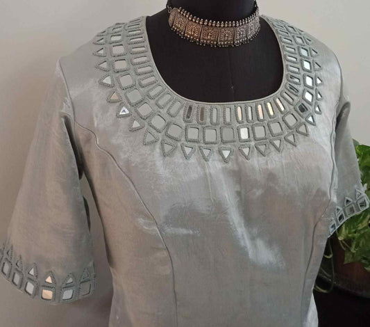 Buy Silver Ash Grey Gaji Silk Mirrorwork Blouse Combo | Perfect for B2B Orders