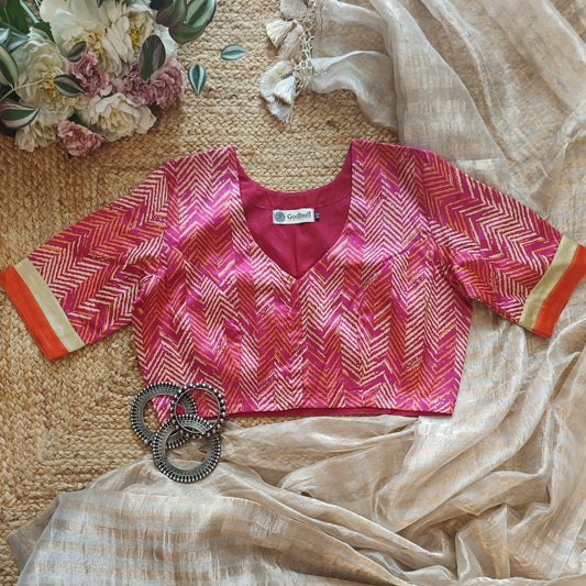 Buy Hot Pink Gaji Silk Chevron Print Blouse | Godhuli