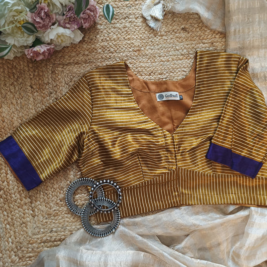 Buy Mustard Gaji Silk Stripes Blouse | Godhuli