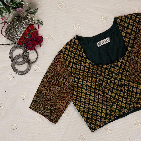 Buy Dark Green Ajrakh Cotton Blouse | Godhuli