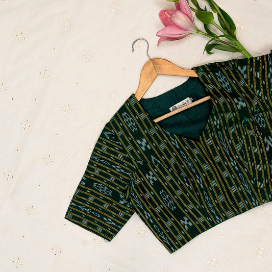 Buy Leaf Green Mercerised Ikat Blouse | Godhuli