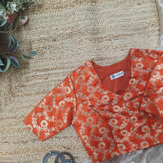 Buy Orange Banarasi Brocade Blouse | Godhuli
