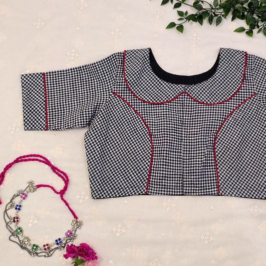 Buy Monochrome Gingham Peter Pan Collar Blouse | Godhuli