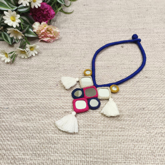 Buy Handcrafted Mirrorwork Blue Dori Neckpiece | Godhuli