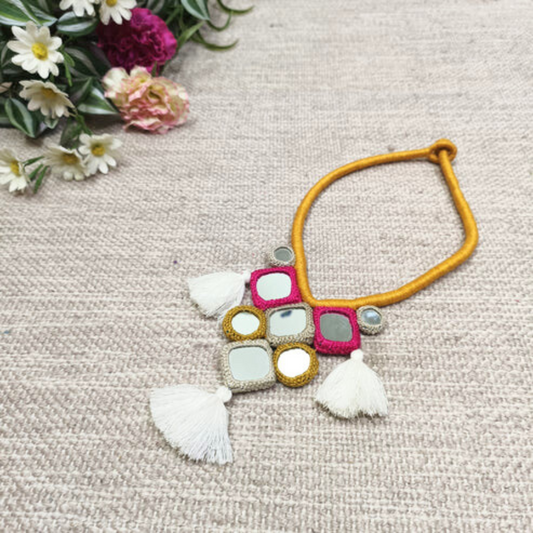 Buy Handmade Ivory Colour Square Mirror Neckpiece | Godhuli