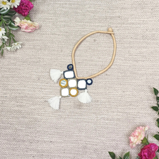 Buy Handmade Ivory Colour Triangular Mirror Neckpiece | Godhuli