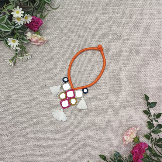 Buy Handcrafted Mirrorwork Orange Dori Neckpiece | Godhuli
