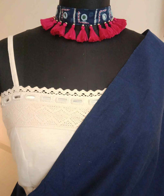 Buy Handmade Indigo Kantha Mirror Neckpiece | Godhuli