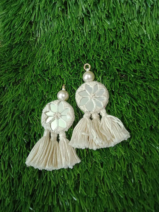 Buy Handmade Mirrorwork Ivory Tassels | Godhuli
