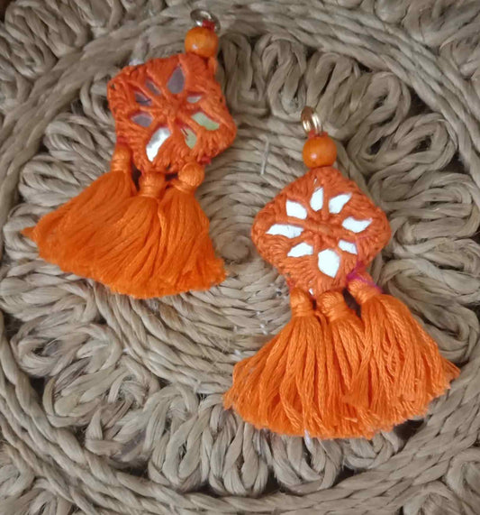 Buy Orange Handmade Mirrorwork Tassels | Godhuli