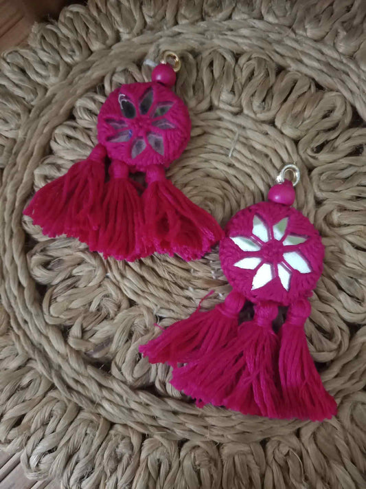 Buy Rani Pink Handmade Mirrorwork Tassels | Godhuli