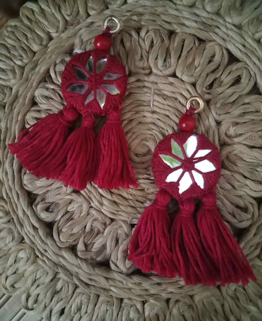 Buy Maroon Handmade Mirrorwork Tassels | Godhuli