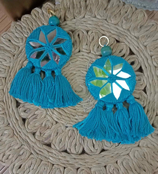 Buy Firozi Blue Handmade Mirrorwork Tassels | Godhuli