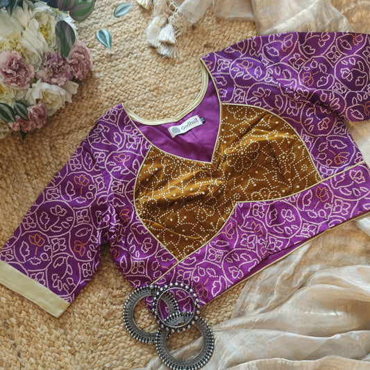 Buy Lilac Purple Gaji Silk Blouse with Mustard Choli Pattern | Godhuli