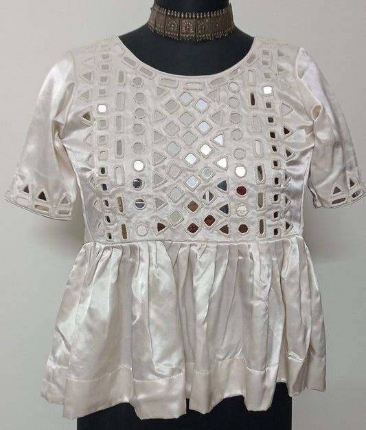 Buy Off White Gaji Silk Peplum Mirrorwork Kurti | Godhuli