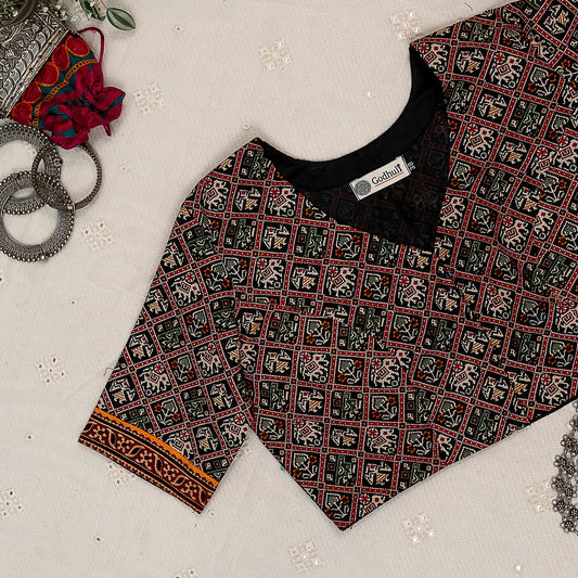 Buy Black Cotton Patola Print Blouse | Godhuli