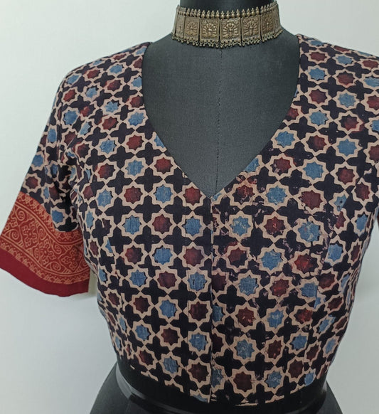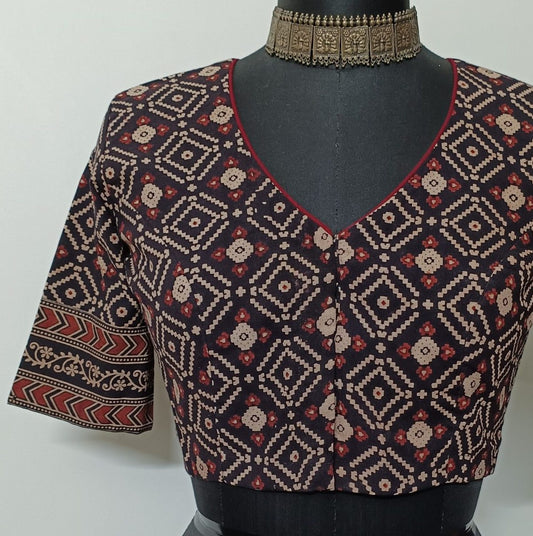 Buy Black Dotted Ajrakh Cotton Designer Blouse | Godhuli