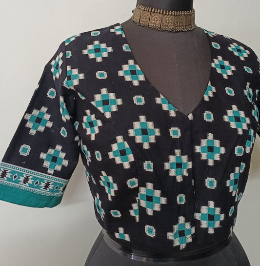 Buy Black Sea Green Geometric Print Blouse | Godhuli