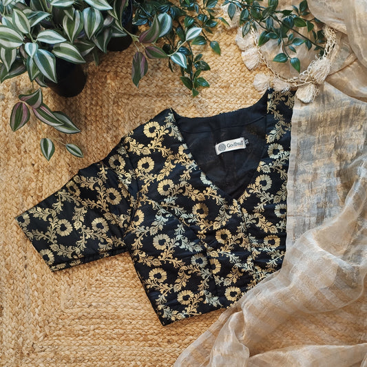 Buy Black Floral Jaal Kimkhab Banarasi Brocade Blouse | Godhuli