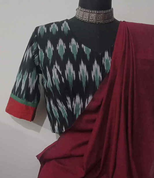 Buy Black Double Ikat Blouse with Red Green Border | Godhuli
