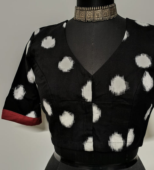Buy Black Dotted Ajrakh Cotton Designer Blouse | Godhuli