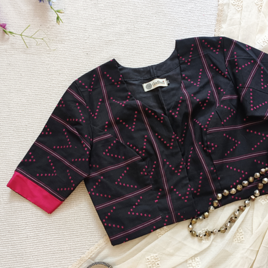 Buy Black Geometric Print Gamathi Blouse | Godhuli