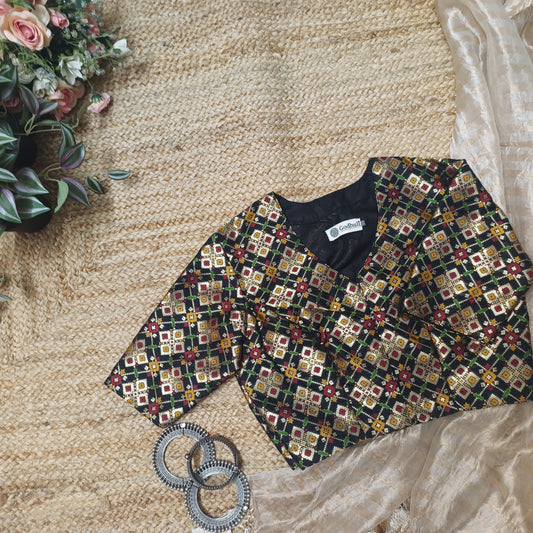 Buy Black Patola Motif Banarasi Brocade Blouse | Godhuli