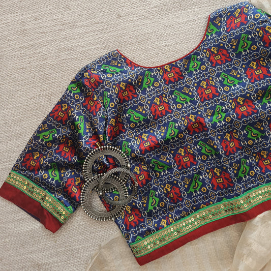 Buy Dark Blue Gaji Silk Patola Blouse | Godhuli
