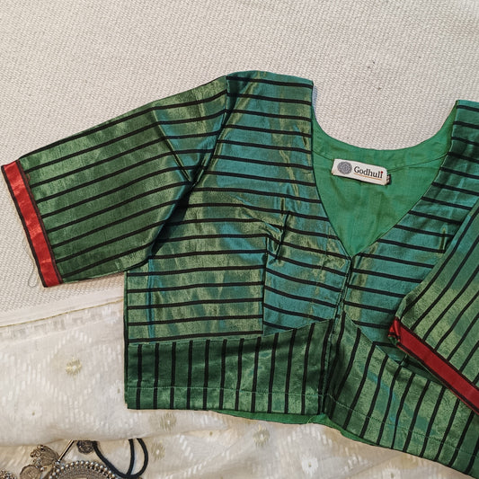 Buy Dark Green Gaji Silk Stripes Blouse | Godhuli