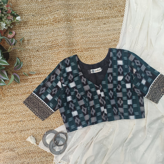 Buy Dark Green Ajrakh Cotton Blouse | Godhuli
