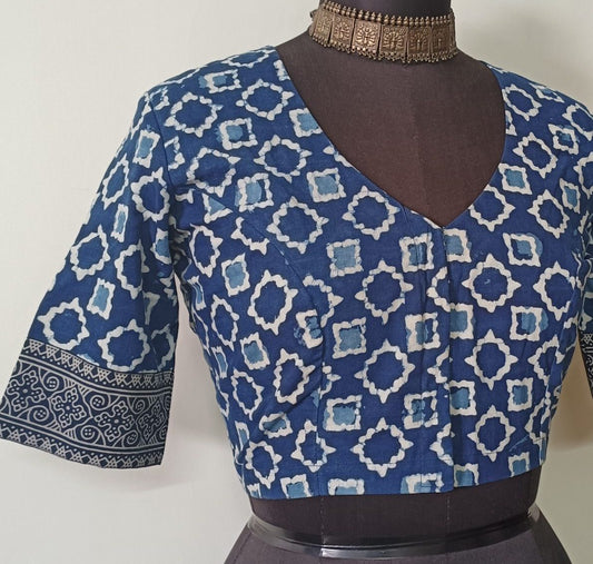 Buy Dabu Indigo Mughal Print Blouse | Godhuli