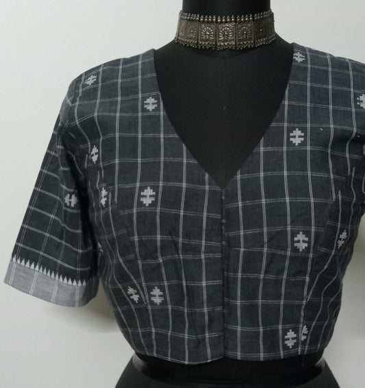Buy Dark Grey Jacquard Checks Blouse | Godhuli