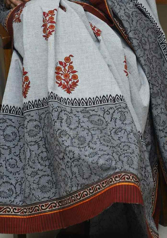 Buy Ash Grey Saree with Handblock Print | Godhuli